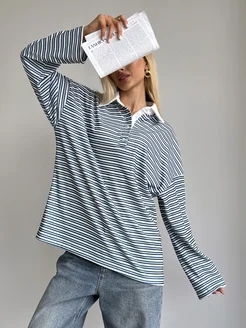 Лонгслив поло оверсайз в полоску