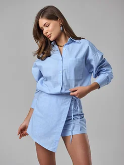 Костюм льняной рубашка с юбкой шорты