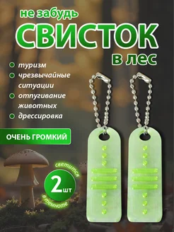 Брелок - свисток для ключей "SOS" светящийся зеленый, 2 шт