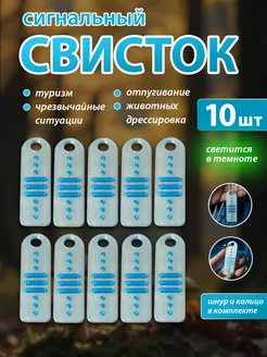 Брелок - свисток для ключей "SOS" светящийся голубой, 10 шт