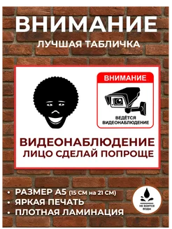 Табличка "Видеонаблюдение лицо сделай попроще!"
