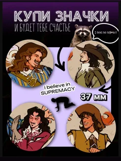 Значки 37 мм Александр Дюма Три мушкетёра, Портос, Дартаньян