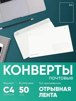 Почтовые конверты бумажные C4, 50 штук куда-кому, Strip
