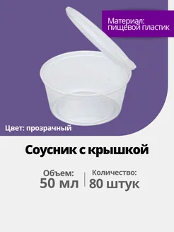 Соусники пластиковые с крышкой 80 мл 80 шт