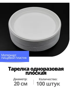 Тарелки одноразовые пластиковые 100 штук 20,5 см