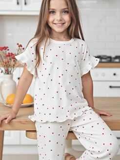 Пижама со штанами белая в сердечко