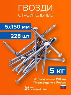 Гвозди строительные 5 х 150 мм 5 кг Россия ГОСТ 4028-63