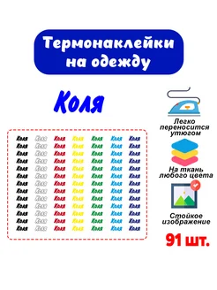 Термонаклейки на одежду с именем Коля