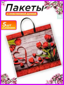 Подарочный пакет с пластиковыми ручками Сердечки 38х35 см 5
