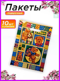 Пакеты подарочные с вырубной ручкой «Тедди» 30х40 см -10 шт