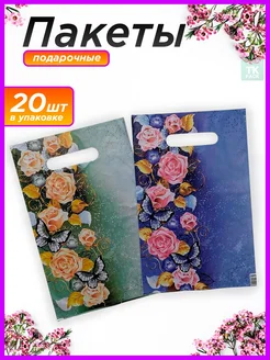 Пакеты подарочные маленькие «Розы» 20х30 см - 20 шт
