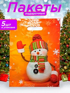 Пакет новогодний с вырубной ручкой Снеговик 30х40 см - 5 шт