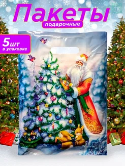 Пакет новогодний с вырубной ручкой Дед Мороз 30х40 см - 5