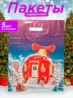Пакет новогодний с вырубной ручкой Шар 38х48 см - 5 шт