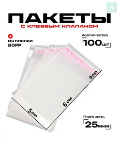 Пакеты прозрачные БОПП (ВОРР) с клеевым клапаном 5х6 см