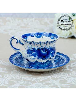 Чайная пара Шатер, гжель, фарфор, 9х15 см