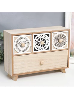 Шкатулка дерево комод 4 ящика бежево-белая 10.3х30х22