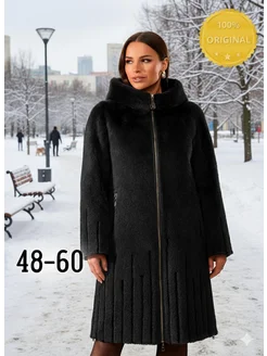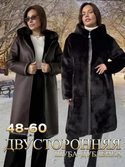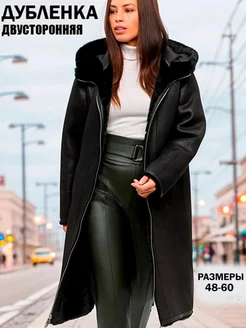 Дубленка зимняя с капюшоном длинная больших размеров