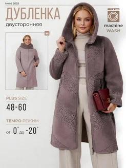 Дубленка зимняя больших размеров с капюшоном длинная