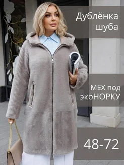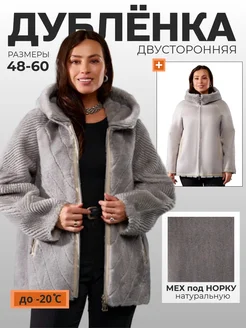Дубленка зимняя с капюшоном больших размеров