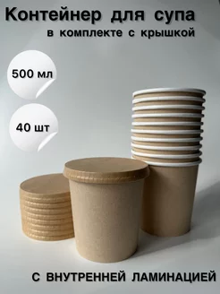 Супница одноразовая бумажная контейнер для супа 500 мл 40 шт