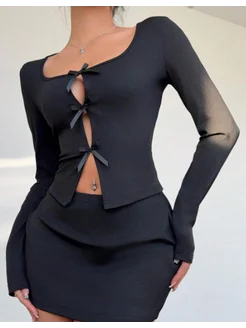 Лонгслив укороченный с бантиками