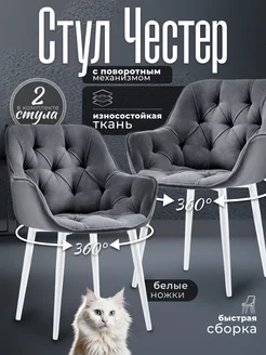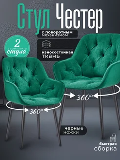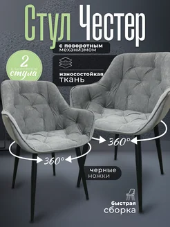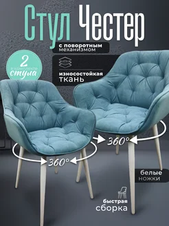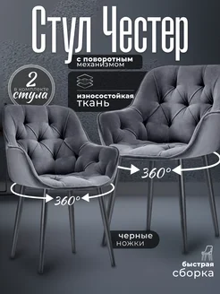 Поворотные велюровые Стулья со спинкой - Набор 2 шт