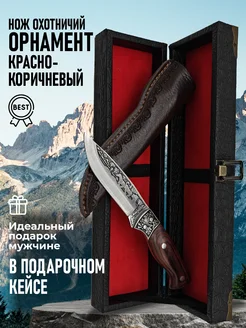 Нож охотничий "Орнамент красный" в подарочном кейсе