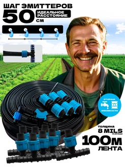 Капельная лента для огорода теплицы дачи 100м шаг 50см