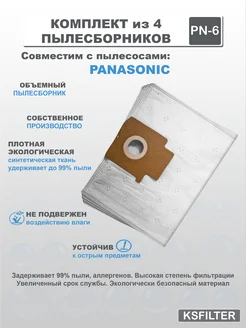 Комплект PN-6 из 4 синтетических пылесборников для PANASONIC