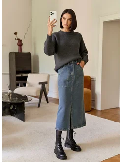 Юбка джинсовая длинная с разрезом спереди