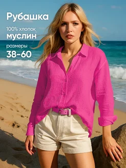 Рубашка из муслина с длинным рукавом офисная оверсайз