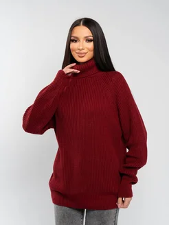 Свитер удлиненный оверсайз с горлом вязаный