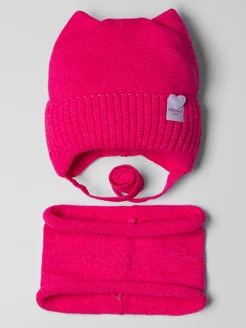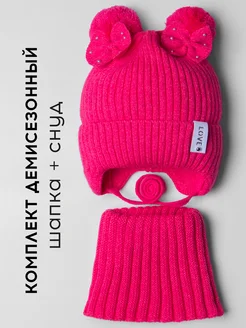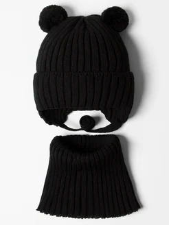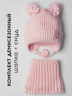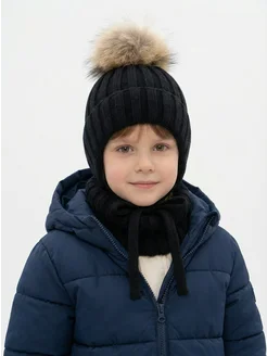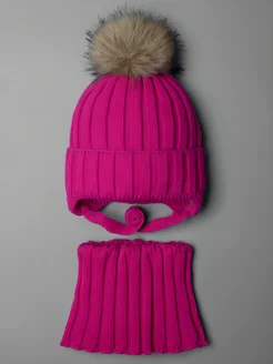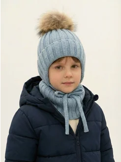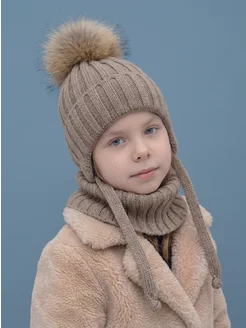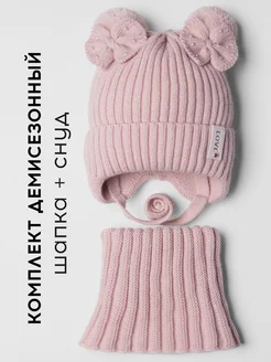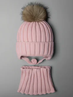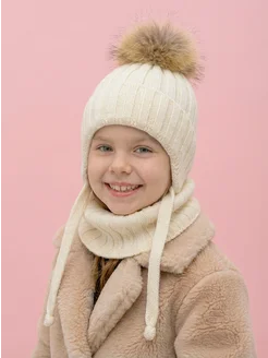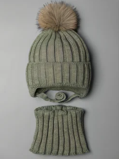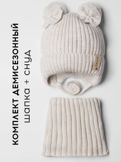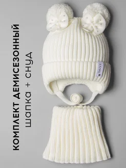 Шапка зимняя детская с помпоном на завязках и шарф снуд