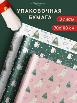 Упаковочная новогодняя бумага для подарков 3 шт