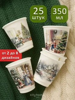 Стаканы бумажные одноразовые новогодние 350 мл