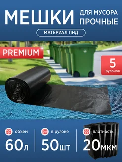 Мешки для мусора Премиум 60л в рулоне 50шт плотные 5шт