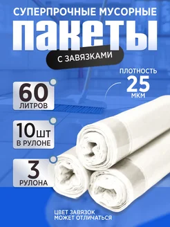 Мешки для мусора Премиум 60л в рулоне 10шт с завязками 3шт