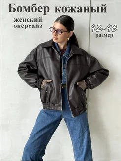 Бомбер кожаный оверсайз куртка осенняя