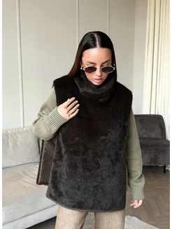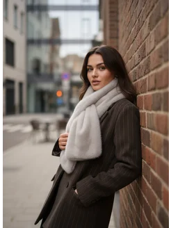Шарф зимний меховой с прорезью из экомеха норки снуд теплый