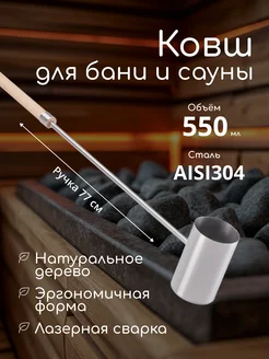 Ковш для бани с длинной ручкой, нержавейка AISI304, 550 мл
