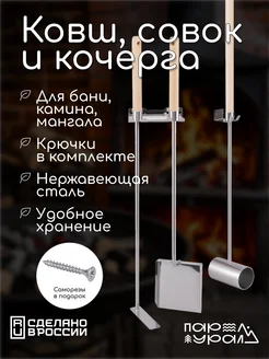 Набор совок, кочерга и ковш 330 мл для бани и сауны