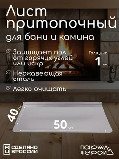 Притопочный лист для печи в баню, камина нержавейка 50x40 см