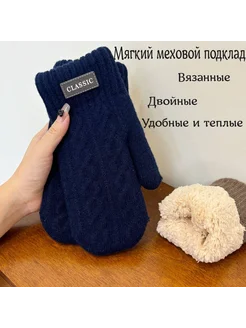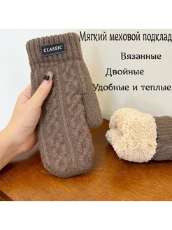 Варежки вязаные шерстяные утепленные с мехом