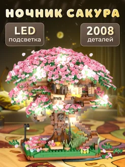 ЗД Конструктор ночник сакура розовая дом на дереве