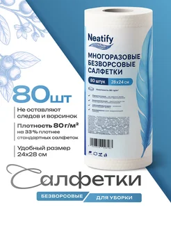 Безворсовые салфетки 80 шт в рулоне для уборки