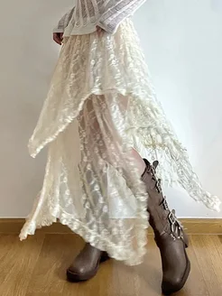 Юбка миди сетка кружевная в стиле бохо асимметричная y2k