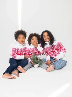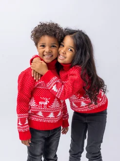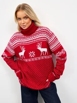 Свитер с горлом новогодний с оленями шерстяной Family look