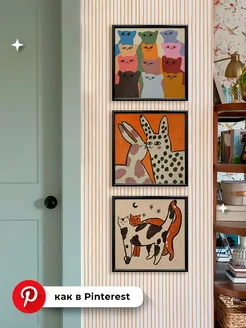 Картина на стену Милые животные Иллюстрация 3 шт 25х25 см