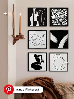 Картина на стену на холсте Черно-белая абстракция 6 шт 15х15